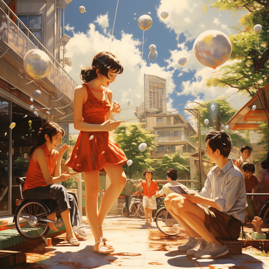 風船が飛んでいて躍動感があります。表情も豊かですね。